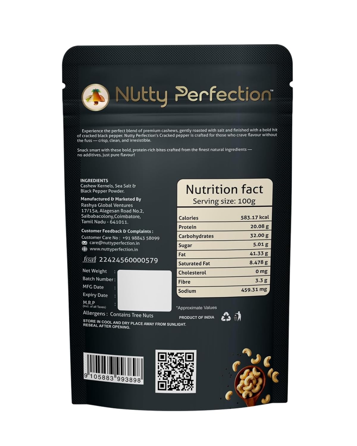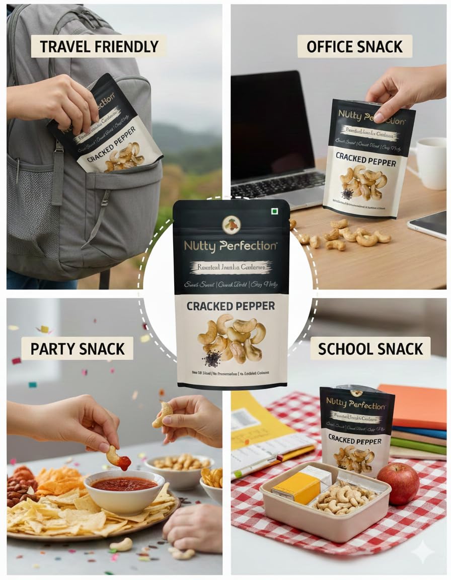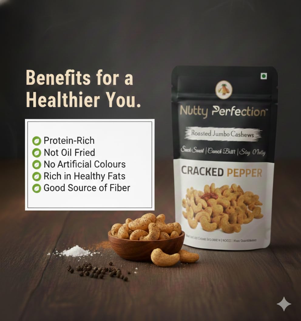 Experience the perfect blend of premium cashews, gently roasted with salt and finished with a bold hit of cracked black pepper. Nutty Perfection’s Cracked pepper is crafted for those who crave flavour without the fuss — crisp, clean, and irresistible.